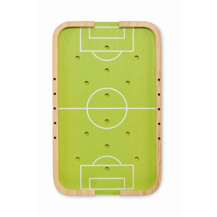 Dřevěná fotbalová hra. Obsahuje hráče, míč, střelce a skórovací tyčky. Rozměry: 24 x 15 x 1.8 cm