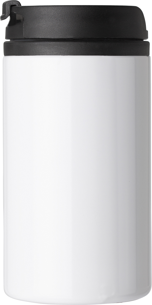 Oboustranná menší termoska (300 ml) v metalových barvách. Vnější stěna je z nerezové oceli, vnitřní stěna je plastová. Šroubovací víko je neprodyšné a má západkový otvor. Dno termosky je protiskluzové. Rozměry: 7,3 x 14,5 cm