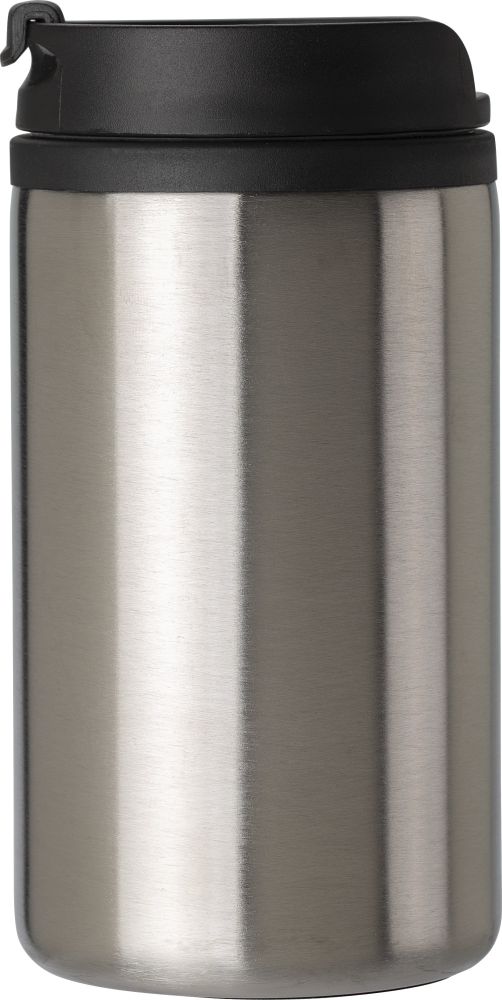 Oboustranná menší termoska (300 ml) v metalových barvách. Vnější stěna je z nerezové oceli, vnitřní stěna je plastová. Šroubovací víko je neprodyšné a má západkový otvor. Dno termosky je protiskluzové. Rozměry: 7,3 x 14,5 cm