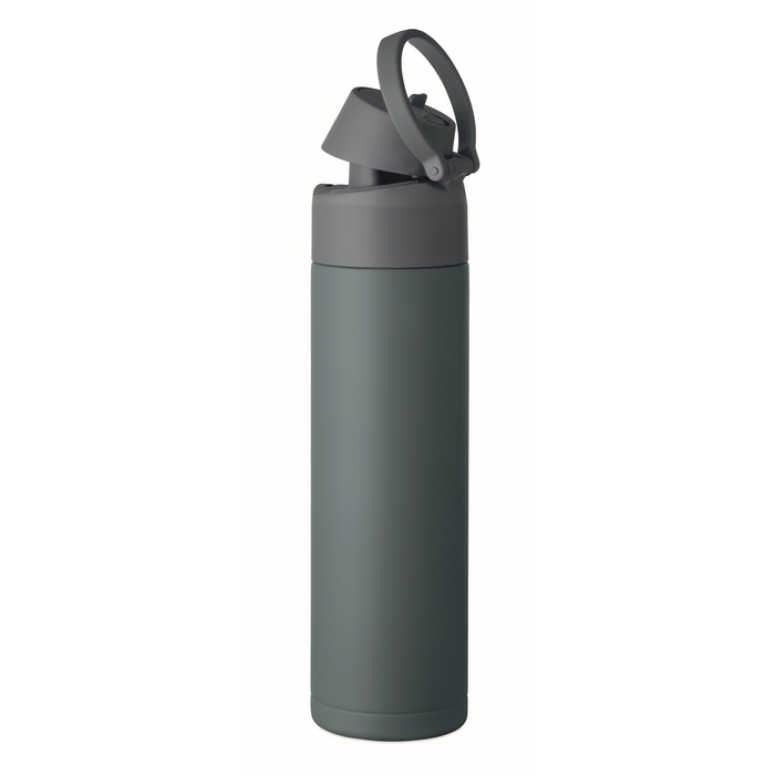 Dvojstěnná láhev z recyklované nerezové oceli (90 % recyklované nerezové oceli a 10 % nerezové oceli). S víčkem z PP 2v1 a rukojetí. Objem: 500 ml. Rozměry: O7.4 x 26.6 cm