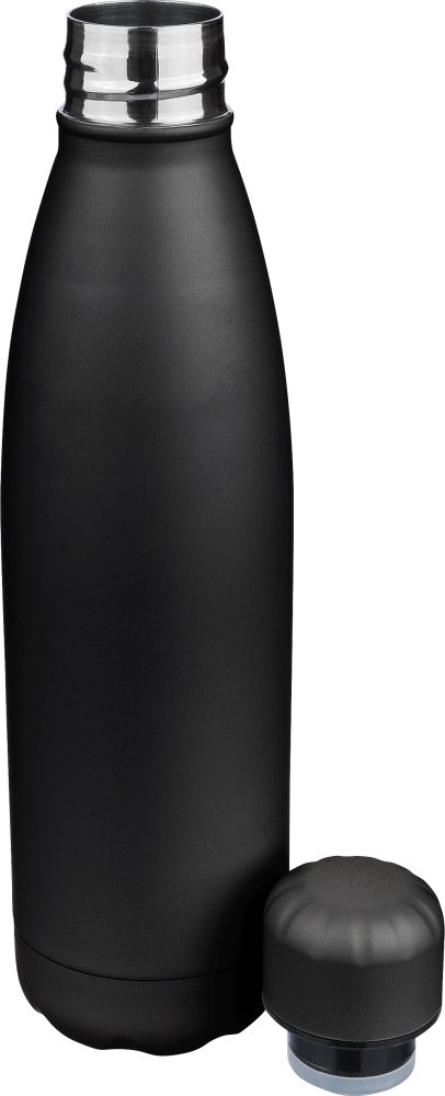 Láhev na pití z recyklované nerezové oceli s objemem 500 ml a dvojitou stěnou pro udržení teplých nebo studených nápojů až 12 hodin. Vnitřní plášť z nerezové oceli zajišťuje vynikající odolnost, odolnost proti korozi a bezpečný kontakt s potravinami a nápoji. Povrchová úprava v hladkém matném odstínu. Šroubovací víčko a dno jsou sladěny v barvě pro čistý a jednotný vzhled. Na přední straně těla je vyryté recyklované logo. Baleno jednotlivě v hnědé kartonové krabici. Rozměry: 7 x 26 cm