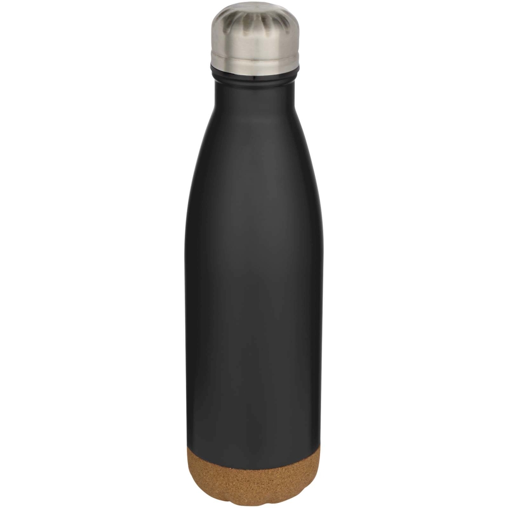 Dvoustěnná vakuově izolovaná nerezová láhev na vodu s korkovými detaily 500ml , černá