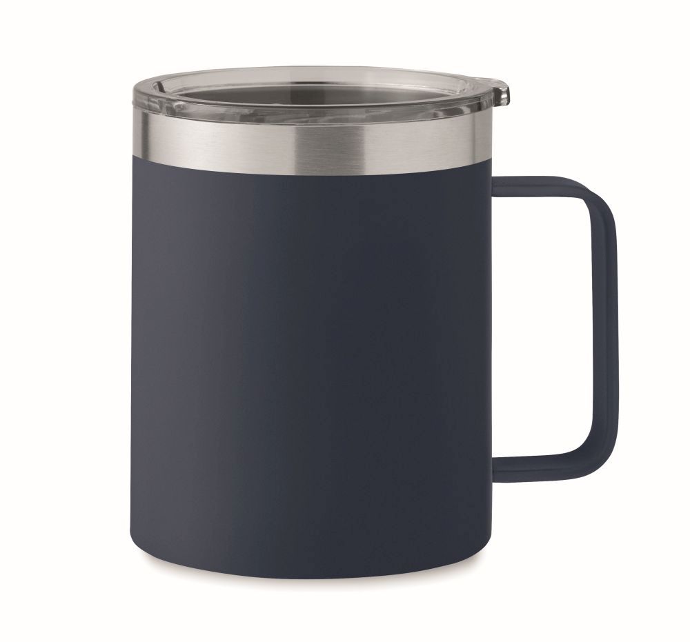 Dvoustěnný termohrnek 300ml z recyklovaného nerezu s plastovým víčkem, tmavě modrý