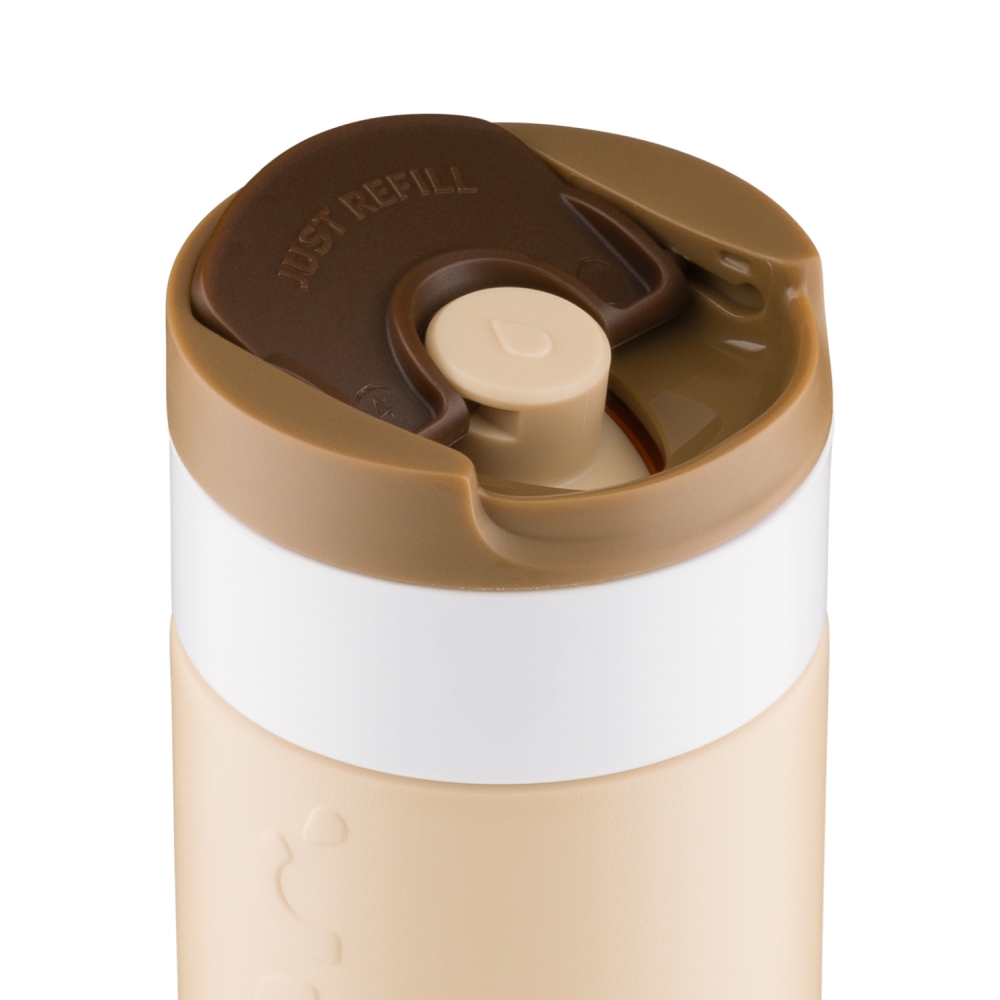 Ranní kofeinování, polední hydratace nebo večerní zážitek z perlení. Tento cestovní hrnek Dopper je připraven na cokoli a je připravený vzít si kamkoli. Udrží horké nápoje horké, studené nápoje chladné a perlivé nápoje perlivé. Žádné úniky. Žádné starosti. Žádná další hmotnost. A rozhodně žádný odpad na jedno použití. Má snadno otevíratelný odklápěcí uzávěr, udrží nápoje horké až 6 hodin a studené až 20 hodin. Vyrobeno z dvoustěnné nerezové oceli s 90% recyklovaným obsahem, s odolným práškovým lakem. Vhodné do myčky nádobí (bez potisku) do 65 °C. Po použití čaje nebo kávy se mohou objevit skvrny nebo zápach. Buďte opatrní s horkými tekutinami. Rozměry: 7 x 18 cm