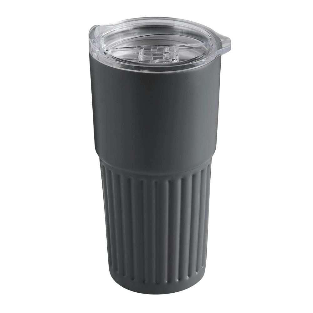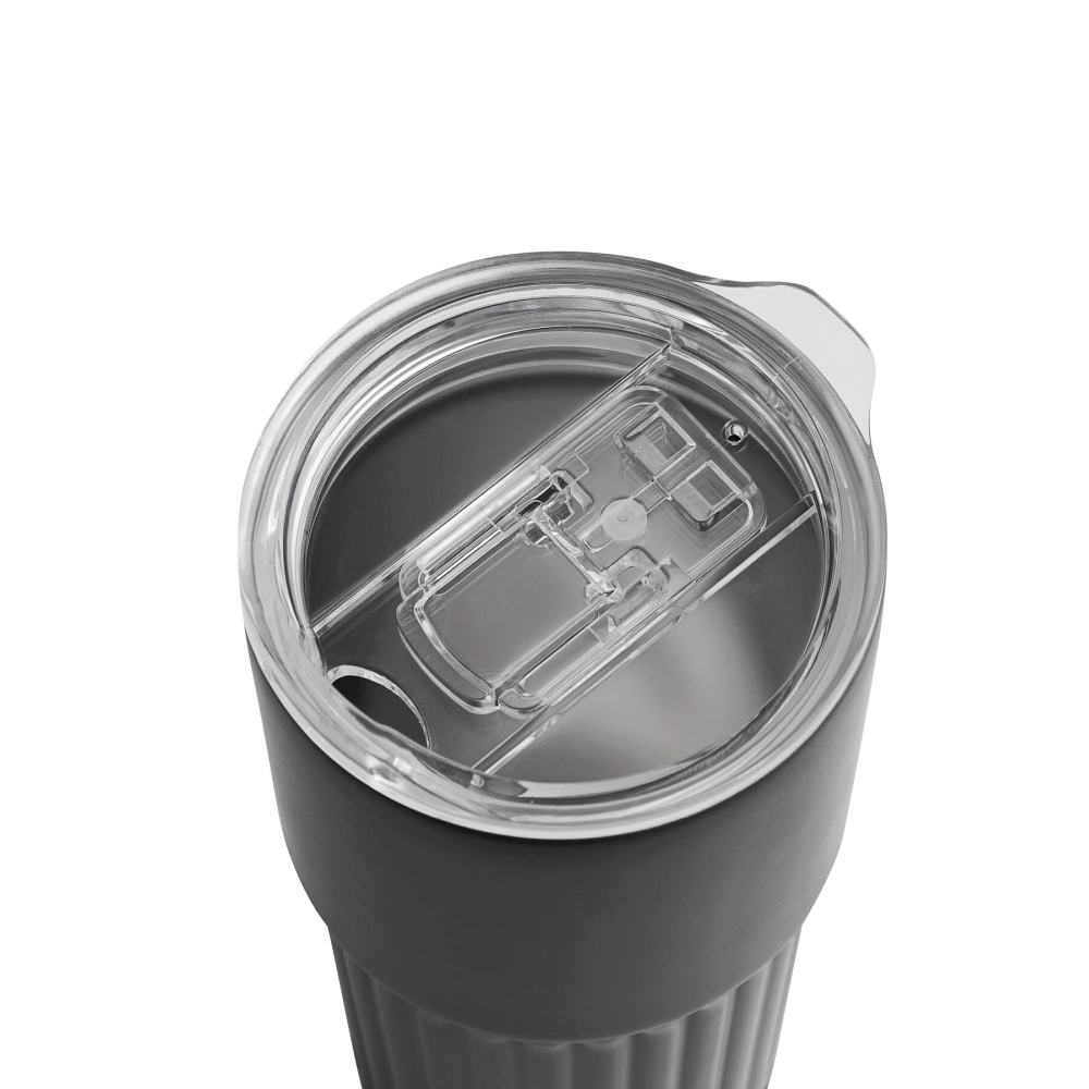 Dvoustěnný vakuový hrnek na pití, vnitřek z recyklované nerezové oceli, vnější strana z nerezové oceli, plastové víko se silikonovým těsněním a integrovaným posuvným otvorem na pití, objem cca 600 ml, udrží teplé nápoje cca 4 hodiny a studené až 8 hodin, baleno v krabičce. Rozměry: O8,7 x 18 cm