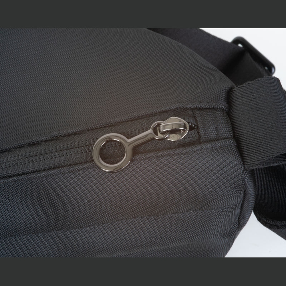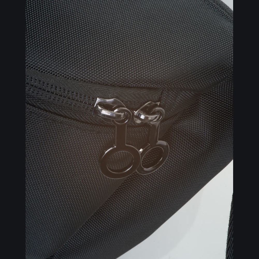 Ferraghini ľledvinka z nylonu s kovovými doplňky a černým vnitřkem. Popruh nastavitelný až do 115 cm. Rozměry: 27,5 x 14 x 16,5 cm