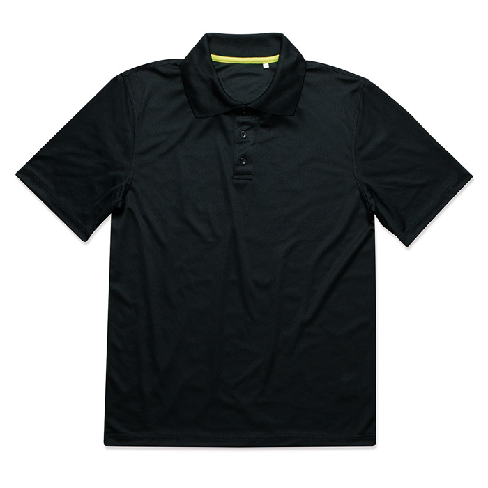 Pánská sportovní polokošile s krátkým rukávem, dekorativní ploché švy, 3 knoflíčky v barvě polokošile, kontrastní páska v barvě reflexní žlutá na vnitřní straně výstřihu, žebrovaný límeček. Materiál: Materiál: 100% Active-Dry polyester síťovina, 140 gsm. Doporučená technologie tisku: sítotisk S3, S4, výšivka.