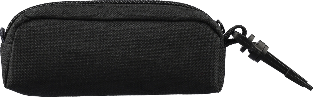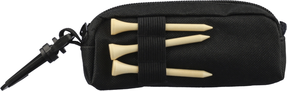 Golfová sada z rPET v pouzdře na zip s karabinou z PP, obsahující 3 cvičné golfové míčky a 3 buková golfová odpaliště. Ideální pro reklamní účely a trénink odpalů. Včetně štítku z rPET. Rozměry: 4,3 cm x 4,5 cm x 14 cm