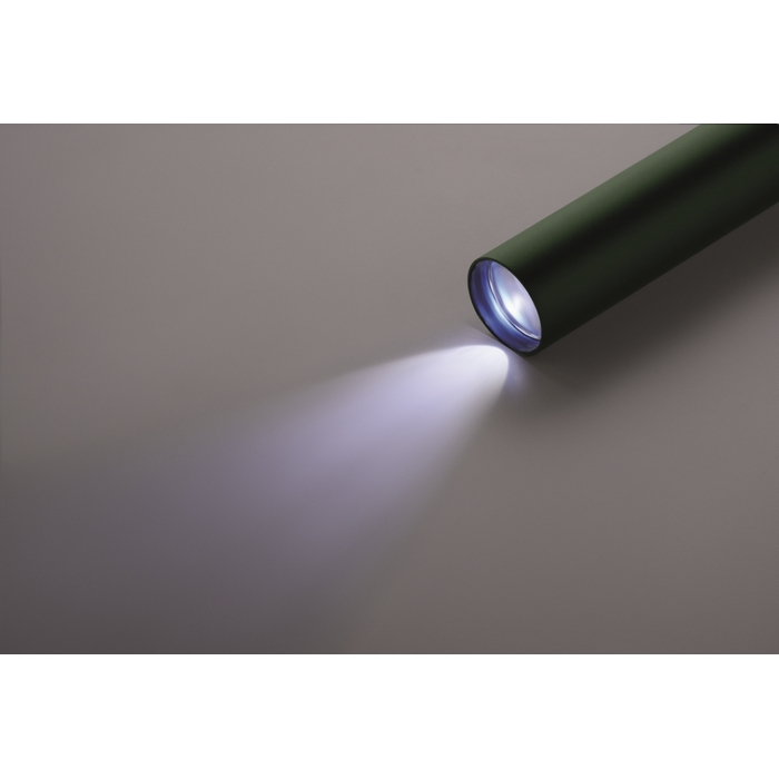 Dobíjecí svítilna z recyklovaného hliníku, 110 lumenů, se 3 nastaveními svícení. 1 vyměnitelná a dobíjecí 14500 lithiová baterie 400 mAh. Rozměry: 2.1 x 2.1 x 10 cm
