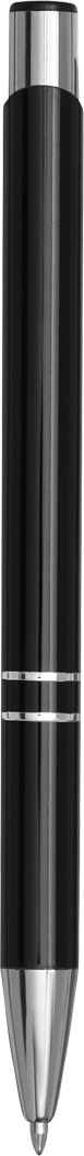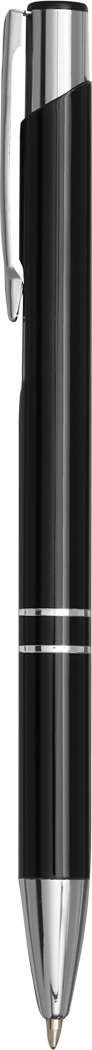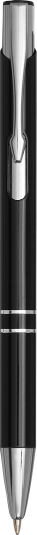 Hliníkové kuličkové pero má lesklé kovové tělo a klip, velkokapacitní náplň s modrým inkoustem, tlačítkový mechanismus. Rozměr: 13,7 cm