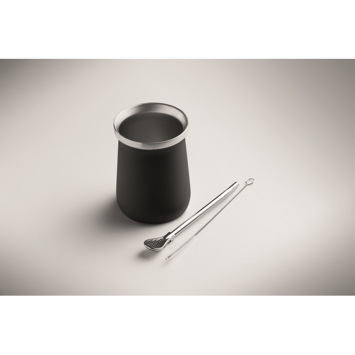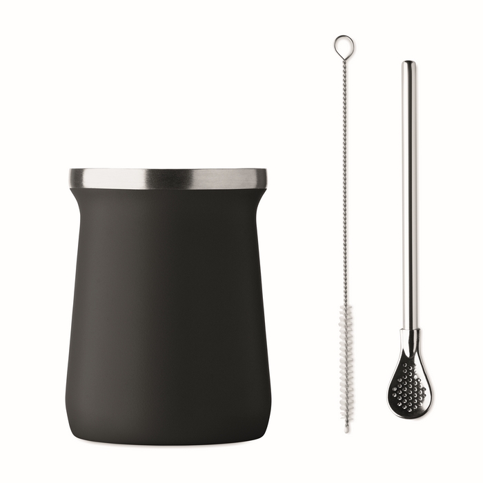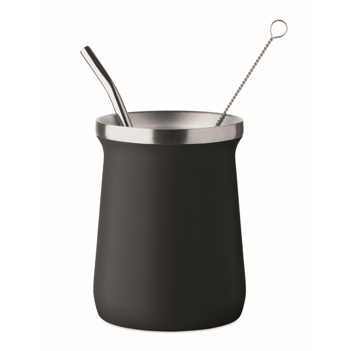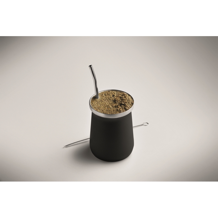 Dvoustěnný hrnek na Yerba maté z recyklované nerezové oceli (90 % recyklované nerezové oceli a 10 % nerezové oceli). Součástí je brčko z nerezové oceli a čisticí kartáček. Objem: 240 ml. Rozměry: O8 x 10.7 cm