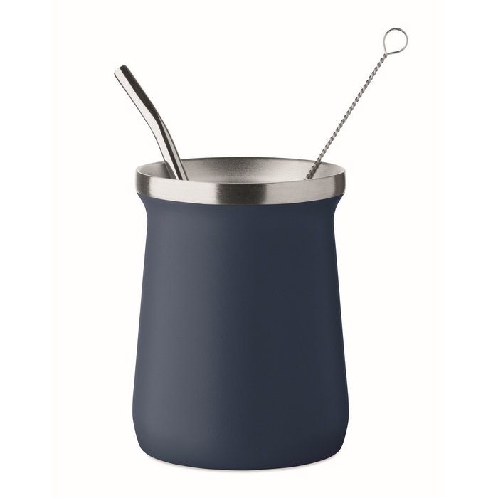 Dvoustěnný hrnek na Yerba maté z recyklované nerezové oceli (90 % recyklované nerezové oceli a 10 % nerezové oceli). Součástí je brčko z nerezové oceli a čisticí kartáček. Objem: 240 ml. Rozměry: O8 x 10.7 cm
