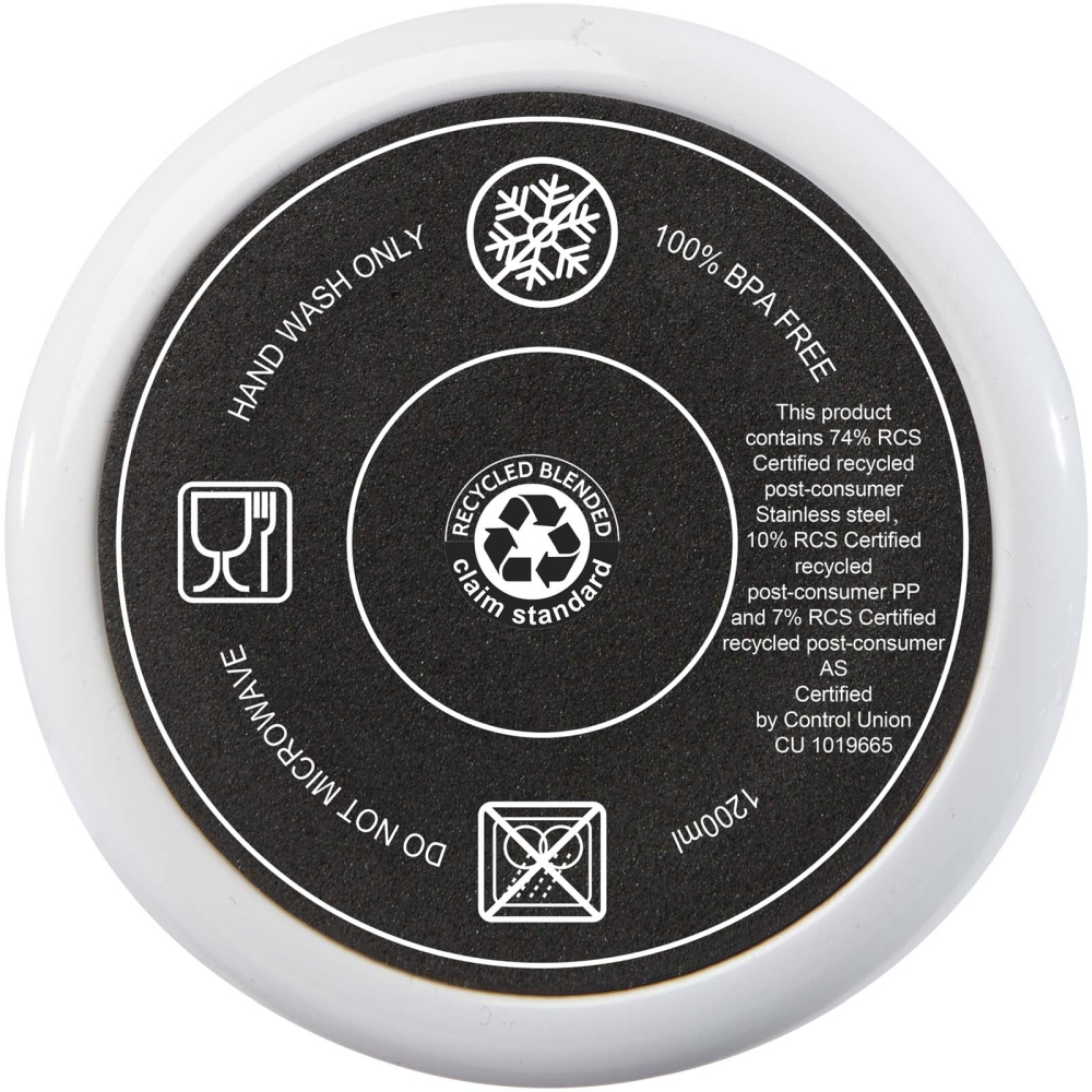 Hrnek se vyznačuje odolnou konstrukcí s dvojitou stěnou, která udržuje nápoje horké nebo studené v jakémkoli prostředí. Vnitřní stěna hrnku je vyrobena z recyklovaného plastu, vnější stěna z recyklované nerezové oceli. Hrnek o objemu 1200 ml nabízí stylový způsob, jak zůstat hydratovaný po celý den. Má přítlačné víčko odolné proti vyšplíchnutí se dvěma otvory a otočným uzávěrem. Dodává se s recyklovaným brčkem potravinářské kvality. Nedoporučujeme mýt v myčce. Rozměry: 13,8 x 26,1 x 10 x O 10 cm