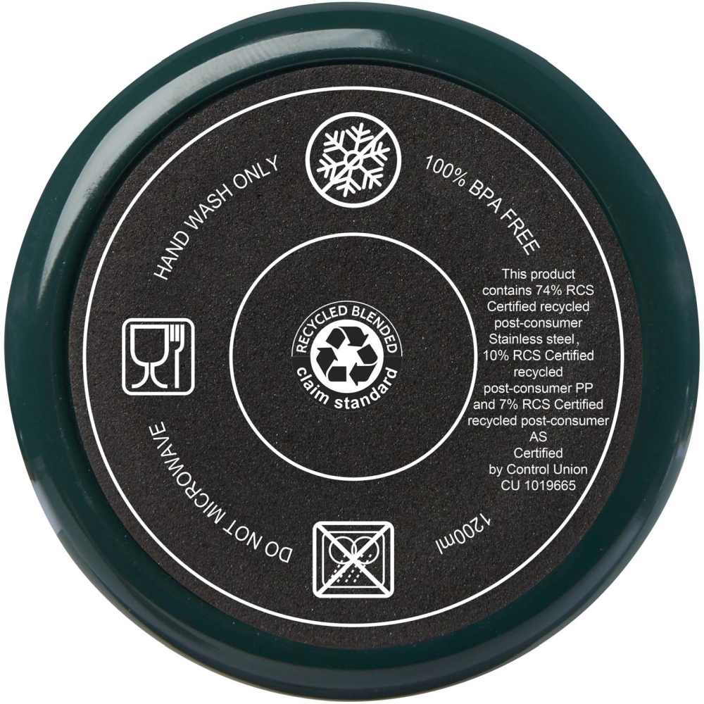 Hrnek se vyznačuje odolnou konstrukcí s dvojitou stěnou, která udržuje nápoje horké nebo studené v jakémkoli prostředí. Vnitřní stěna hrnku je vyrobena z recyklovaného plastu, vnější stěna z recyklované nerezové oceli. Hrnek o objemu 1200 ml nabízí stylový způsob, jak zůstat hydratovaný po celý den. Má přítlačné víčko odolné proti vyšplíchnutí se dvěma otvory a otočným uzávěrem. Dodává se s recyklovaným brčkem potravinářské kvality. Nedoporučujeme mýt v myčce. Rozměry: 13,8 x 26,1 x 10 x O 10 cm