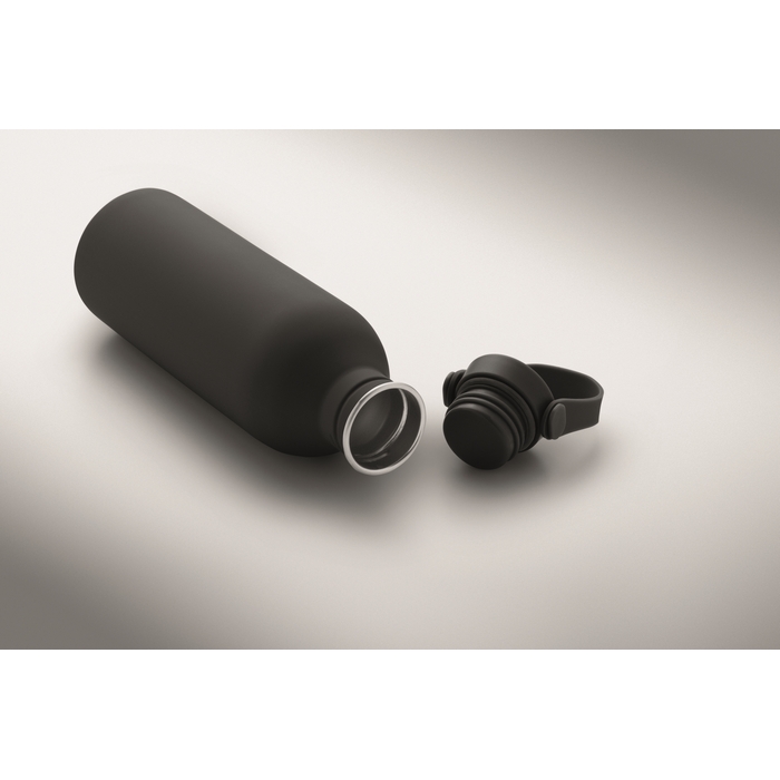 Jednostěnná láhev vyrobená z 90 % z recyklované nerezové oceli a z 10 % z nerezové oceli s pogumovaným povrchem. Víčko z PP a silikonové poutko. Objem: 500 ml. Může přenášet teplo, díky jedné stěně. Rozměry: O6.1 x 21.3 cm
