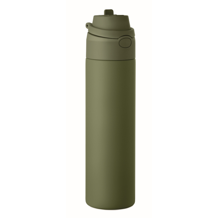 Jednostěnná láhev z recyklované nerezové oceli (90 % recyklované nerezové oceli a 10 % nerezové oceli). S víčkem z PP 2v1 a rukojetí. Objem: 650 ml. Rozměry: O7.4 x 26.6 cm