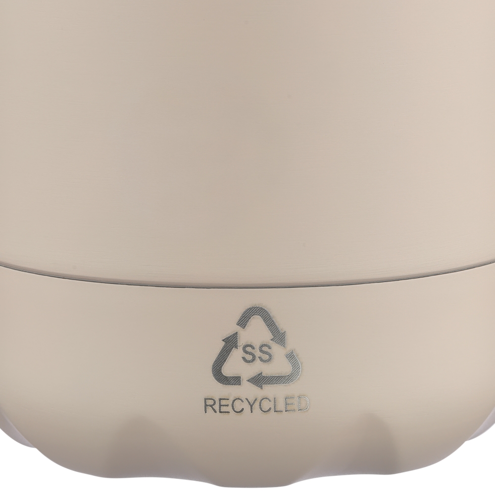 Jednostěnná láhev na pití z recyklované nerezové oceli o objemu 700 ml, vhodná pro studené nápoje, udrží je chladné 3 až 4 hodiny. Vnitřní vrstva z nerezové oceli zajišťuje vynikající odolnost, odolnost proti korozi a bezpečný kontakt s potravinami a nápoji. Matná barva s odpovídajícím šroubovacím víčkem a dnem. Na přední straně je vyryto recyklované logo. Baleno jednotlivě v hnědé kartonové krabici. Rozměry: 7 x 26 cm