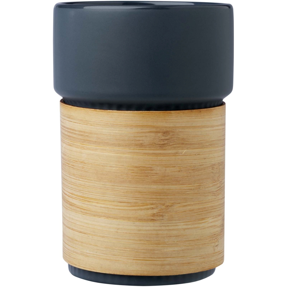 Stylový keramický kelímek je dodáván s odnímatelným bambusovým návlekem, který je ideální pro použití při pití horkých nápojů. Bambus pochází z udržitelných, ekologicky a sociálně odpovědných zdrojů. Objemová kapacita: 340 ml. Dodává se v dárkové krabičce z recyklované lepenky. Rozměry: 11,7 x 6,4 cm
