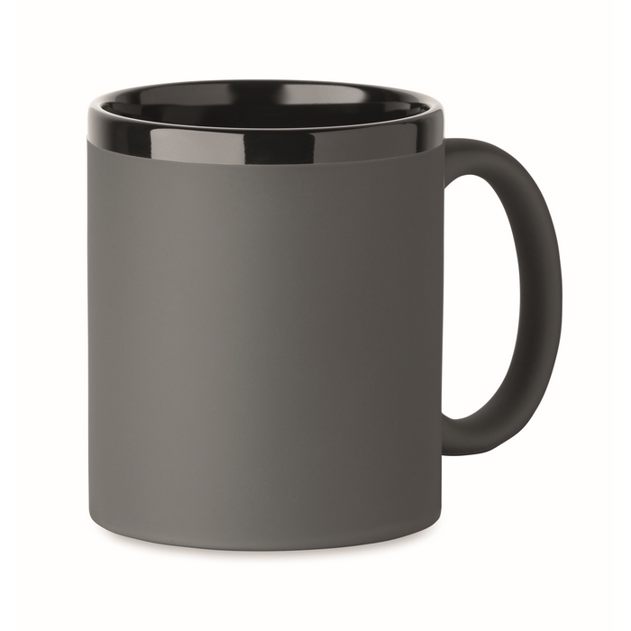 Keramický hrnek s povrchovou úpravou Soft Touch a černým vnitřkem a okrajem. Vhodný pro gravírování. Objem 300 ml. Baleno jednotlivě v bílé kartonové krabičce.Rozměry: O8,2 x 9,6cm