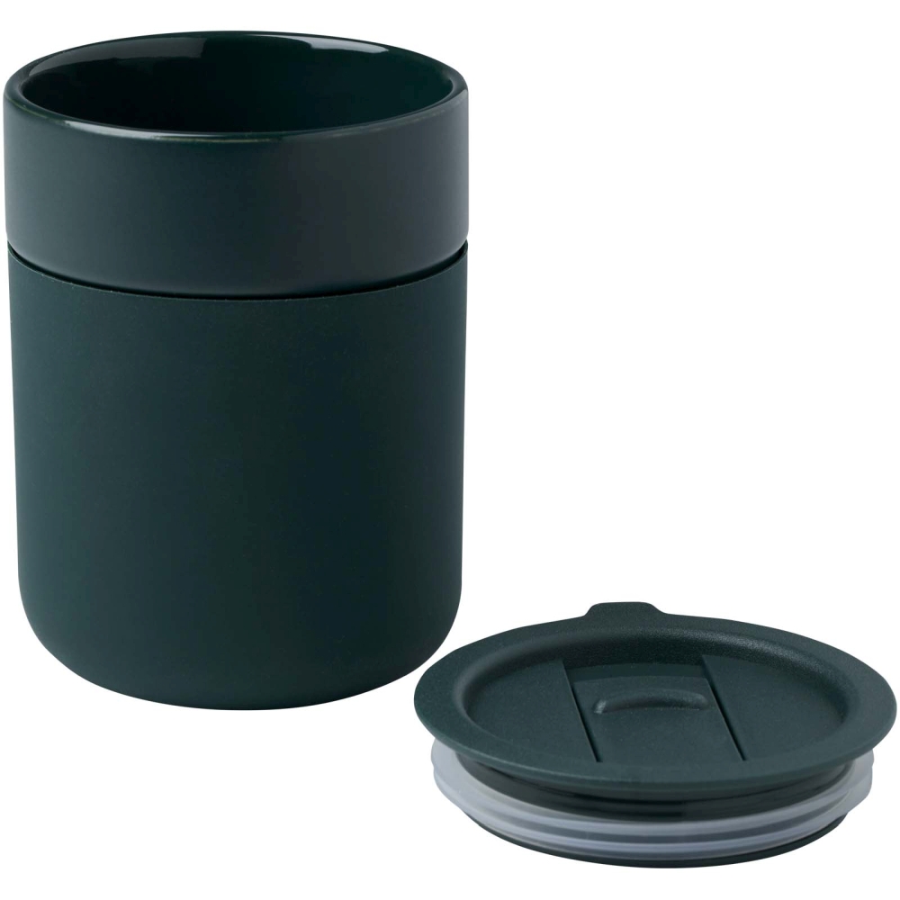 Jednostěnný keramický hrnek má jednoduchý a praktický design pro každodenní použití a je vybaven silikonovým obalem pro pohodlné uchopení. Víčko bránící rozlití. Objemová kapacita: 330 ml. Rozměry: 8,7 x 10,5 x 8,2 x O 8 cm