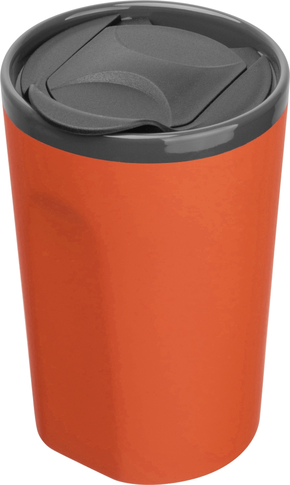 Pogumovaný cestovní keramický pohár, 400 ml, s posuvným víčkom. Rozměry: o 8,9 x 13,5 cm