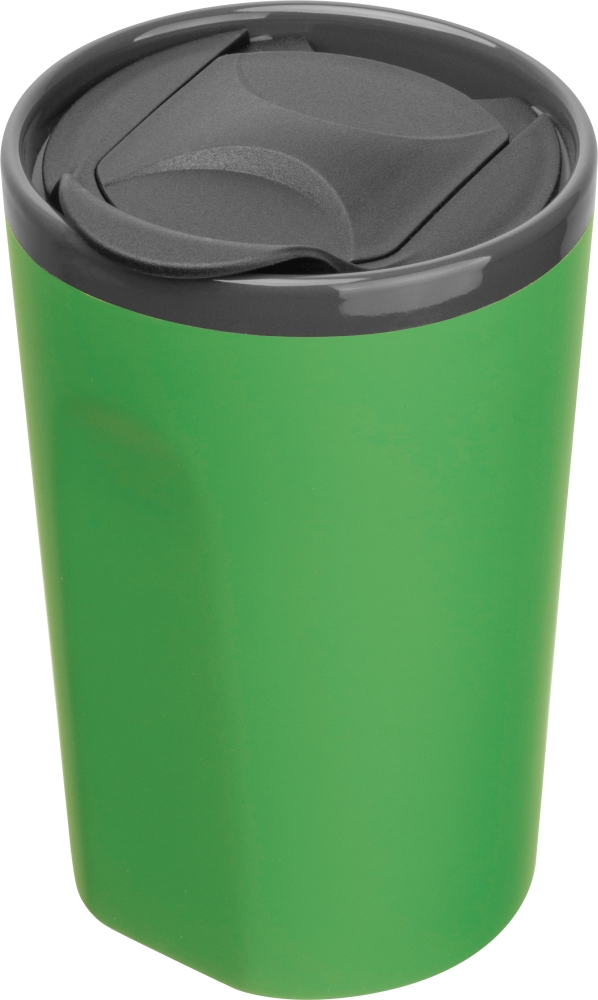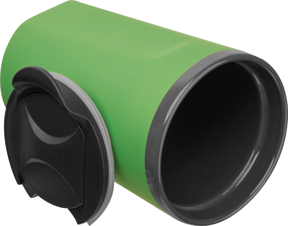 Pogumovaný cestovní keramický pohár, 400 ml, s posuvným víčkom. Rozměry: o 8,9 x 13,5 cm