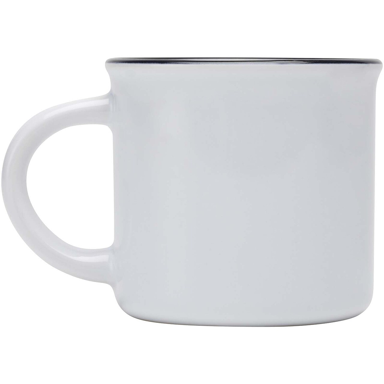 Keramický hrnek s retro designem pro vaši oblíbenou ranní kávu nebo čaj. Speciální povrchová úprava na vnější straně, která umožňuje sublimační tisk. Vhodné do myčky. Dodává se v dárkové krabičce z recyklované lepenky. Objemová kapacita: 240 ml. Rozměry: 7 x 8 cm
