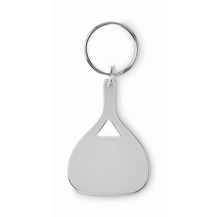 Klíčenka z recyklovaného hliníku ve tvaru paddle pálky. Rozměry: 3.8 x 5.4 x 0.17 cm
