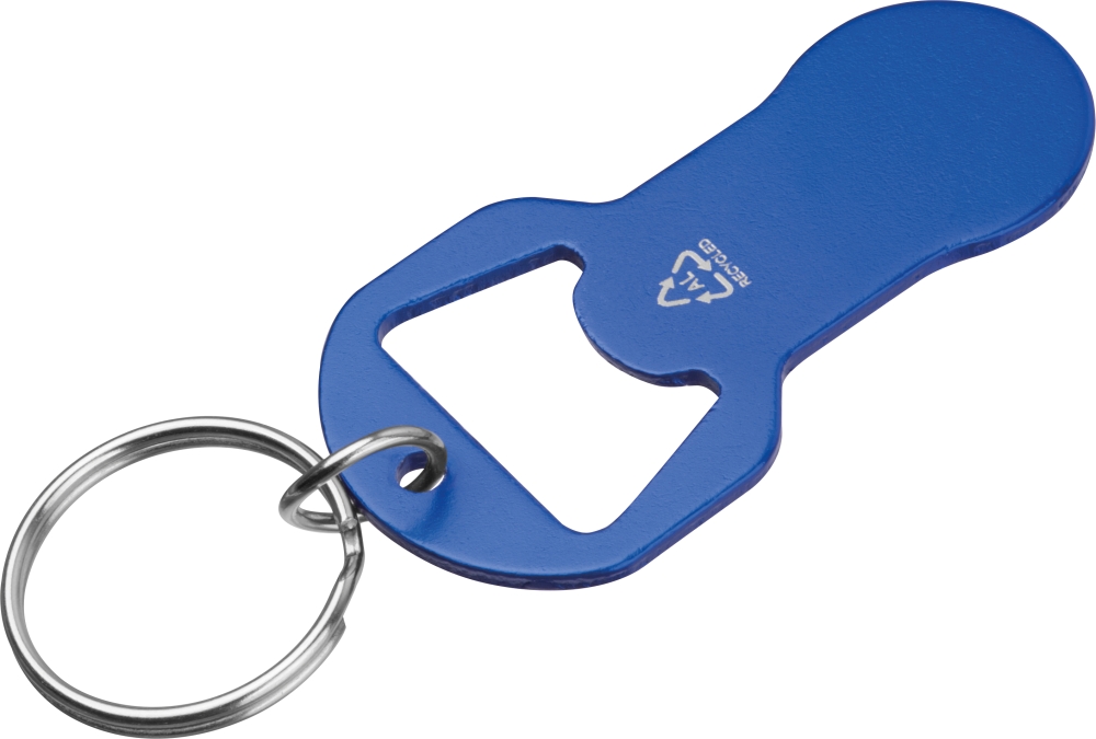 Klíčenka z recyklovaného hliníku s integrovaným otvírákem na lahve a žetonem do nákupního vozíku. Lehká, praktická a ideální na každodenní použití. Rozměry: 6,1 x 3,1 x 0,2 cm