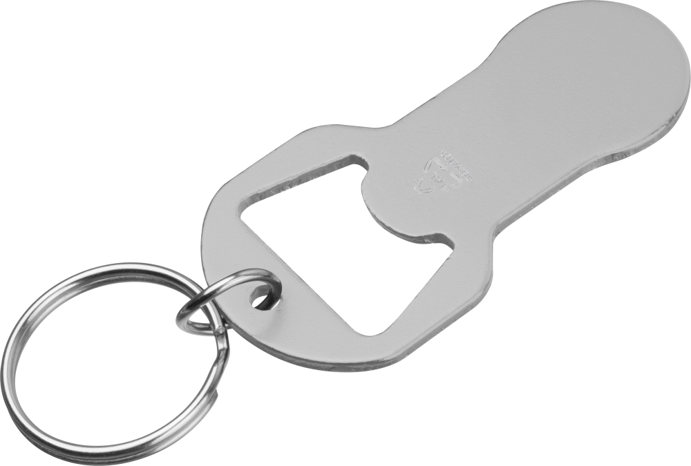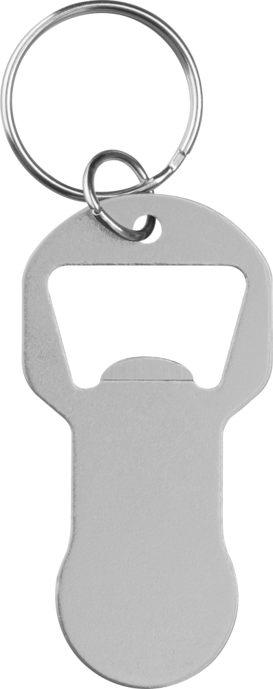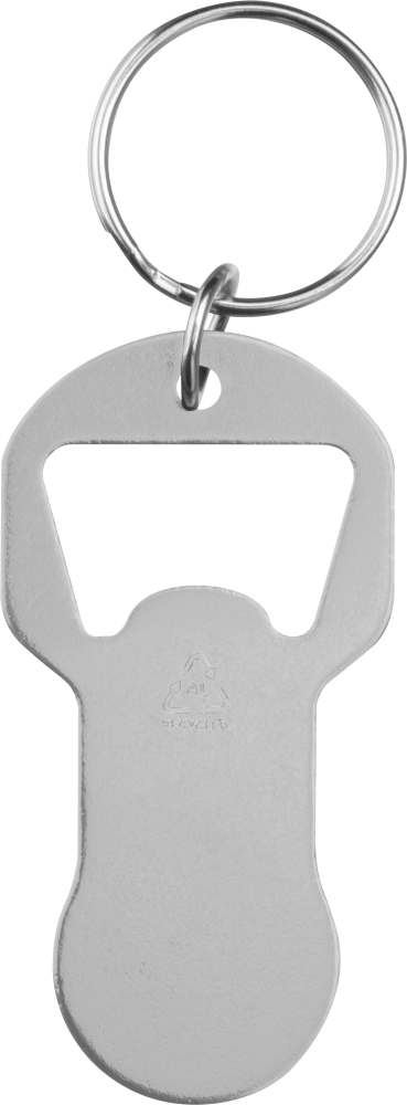 Klíčenka z recyklovaného hliníku s integrovaným otvírákem na lahve a žetonem do nákupního vozíku. Lehká, praktická a ideální na každodenní použití. Rozměry: 6,1 x 3,1 x 0,2 cm