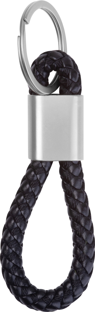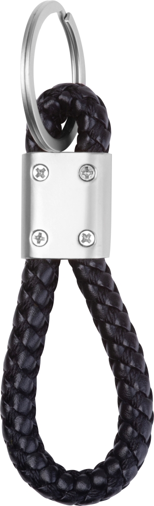 Kovová klíčenka s odolnou PU šňůrkou. Rozměry: 8,8 x 3,3 x 1 cm