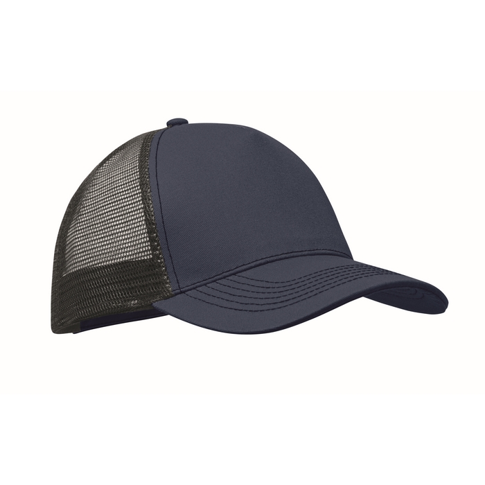 Pětipanelová kšiltovka trucker s čelem a kšiltem z bavlny 250 g/m2. Zadní síťovina z polyesteru, zapínání na suchý zip. Rozměry: 21 x 16 x 11.5 cm