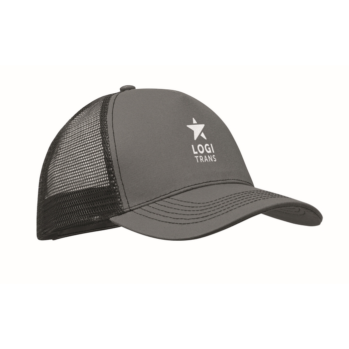 Pětipanelová kšiltovka trucker s čelem a kšiltem z bavlny 250 g/m2. Zadní síťovina z polyesteru, zapínání na suchý zip. Rozměry: 21 x 16 x 11.5 cm