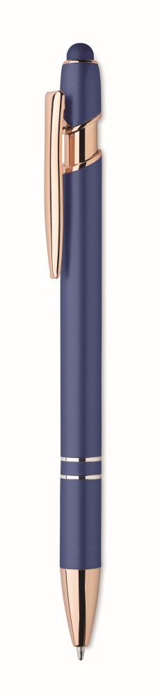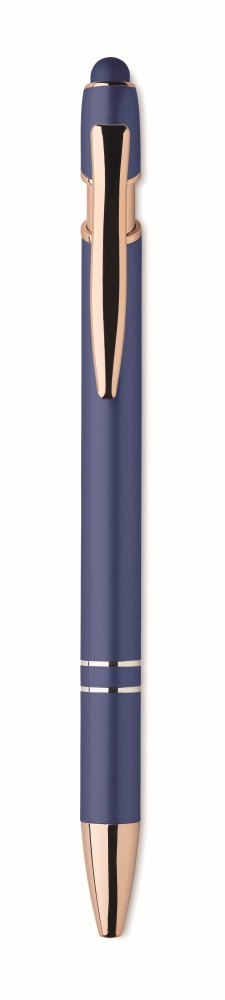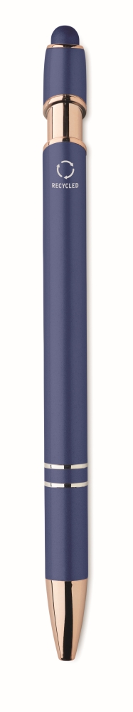 Recyklované hliníkové stylusové kuličkové pero s růžově zlatými detaily. Modrý inkoust. Rozměry: O 1 x 14,3 cm. Materiál: recyklovaný hliník