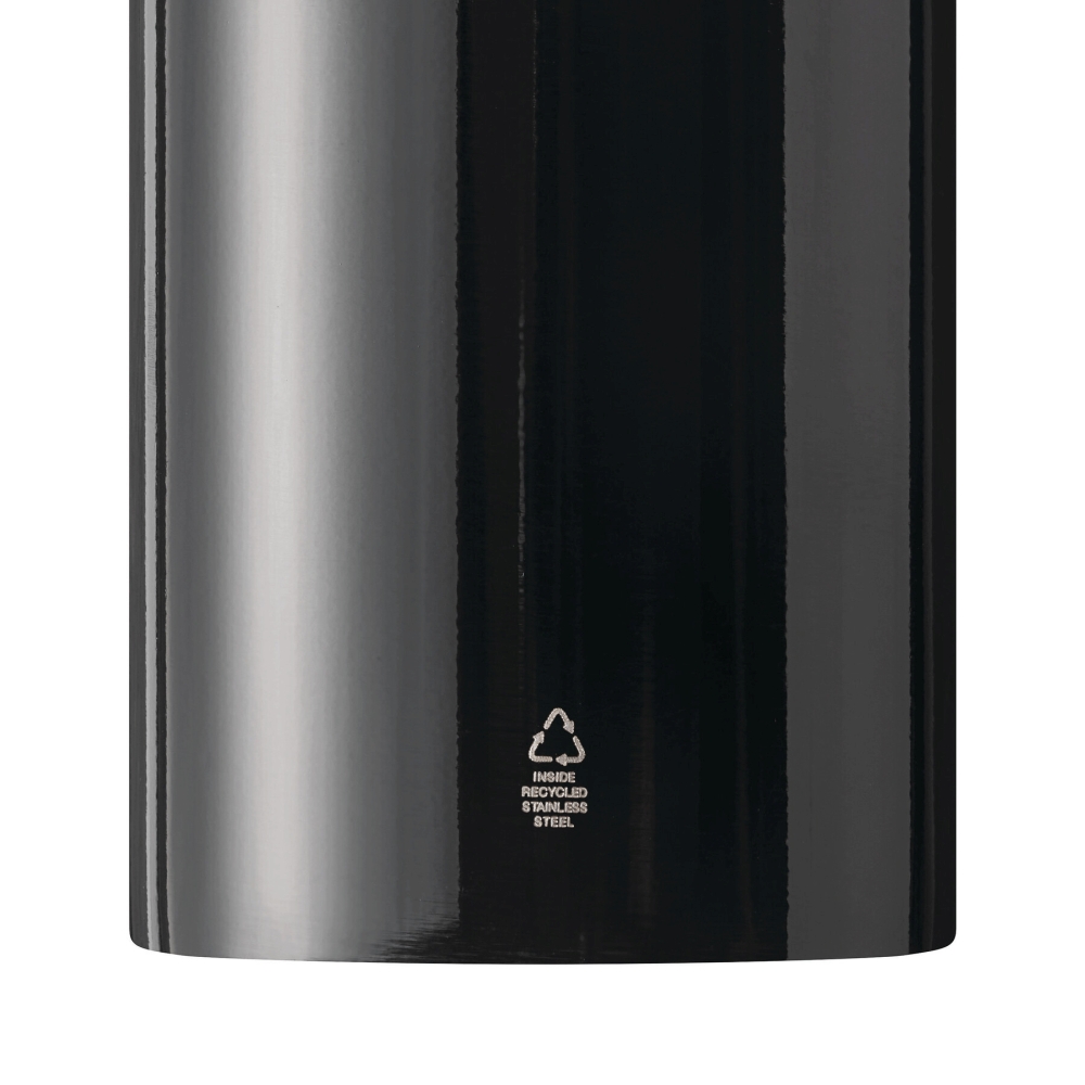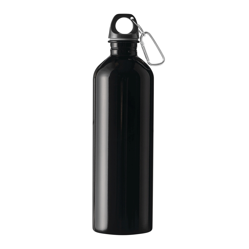 Láhev na pití, jednostěnná: vyrobena z recyklované nerezové oceli, bezpečnostní černý šroubovací uzávěr z plastu, silikonové těsnění, rukojeť na přenášení, kroužek na klíče a karabina (karabina NENÍ vhodná pro lezení), objem cca 750 ml. Rozměry: O7,3 x 26 cm