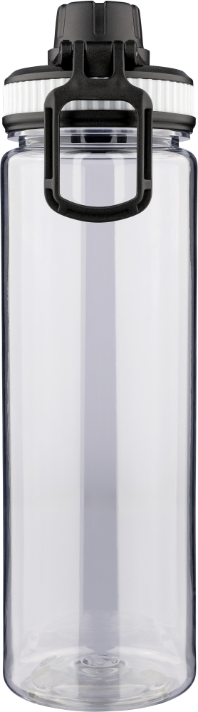 Láhev na pití z rPET (750 ml) s PP víčkem, rukojetí pro přenášení a šroubovacím uzávěrem. Víčko je opatřeno barevným silikonovým detailem, který ladí s průhledným tělem láhve. Rozměry: 7 cm x 25 cm