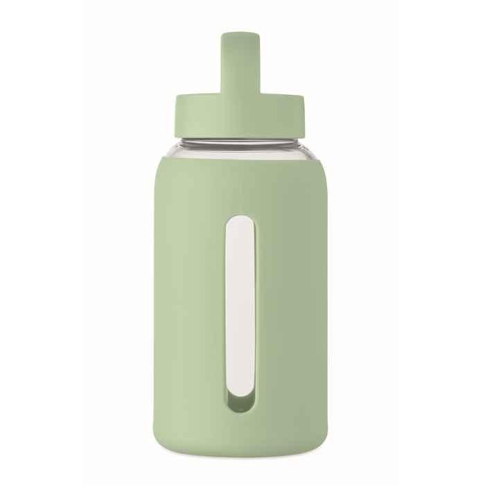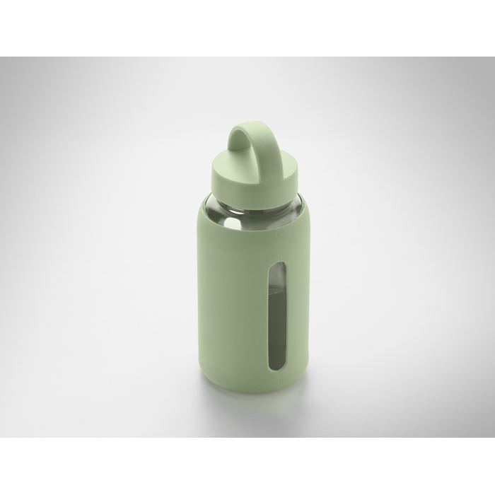 Láhev z borosilikátového skla se silikonovým návlekem a PP víčkem s rukojetí. Objem: 600 ml Rozměry: O8.5 x 20.5 cm