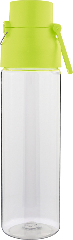 Tritanová láhev na pití o objemu 750 ml s průhledným tělem a barevným víčkem. Vyrobena z odolných a lehkých materiálů (PP), které odolávají vlhkosti, chemikáliím a každodennímu nošení pro dlouhou životnost. Je určena pro každodenní použití, má bezpečné zapínání na knoflík a horní rukojeť pro snadné přenášení. Vhodná do práce, do školy nebo na venkovní aktivity. Rozměry: 6 x 27,5 cm