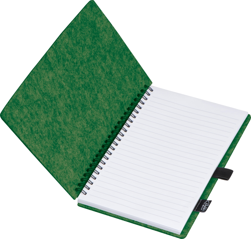 Linkovaný zápisník A5, 80 listů, desky z RPET plsti, tmavě zelená