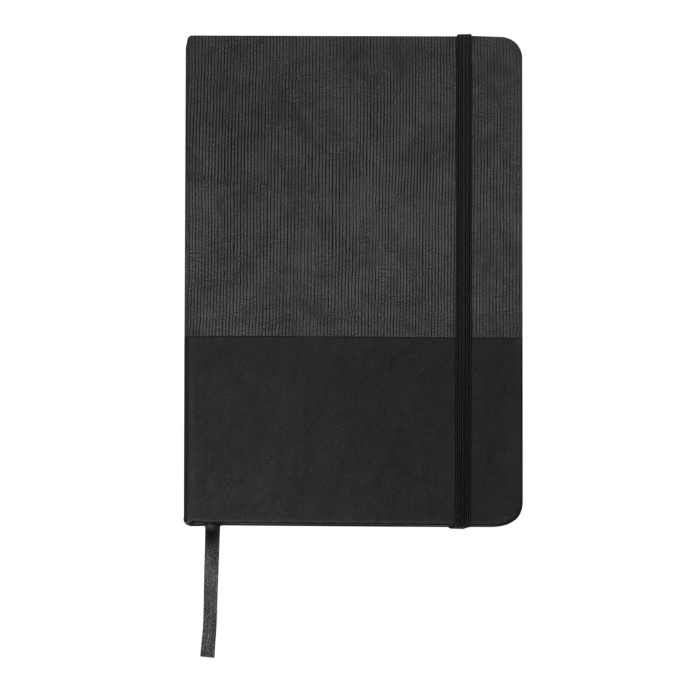 Poznámkový blok A5 se zaoblenými rohy, zavírání gumičkou, s integrovanou záložkou, 80 stran, linkovaný, 70 g/m2. Rozměry: 21,5 x 14,3 x 1,4 cm