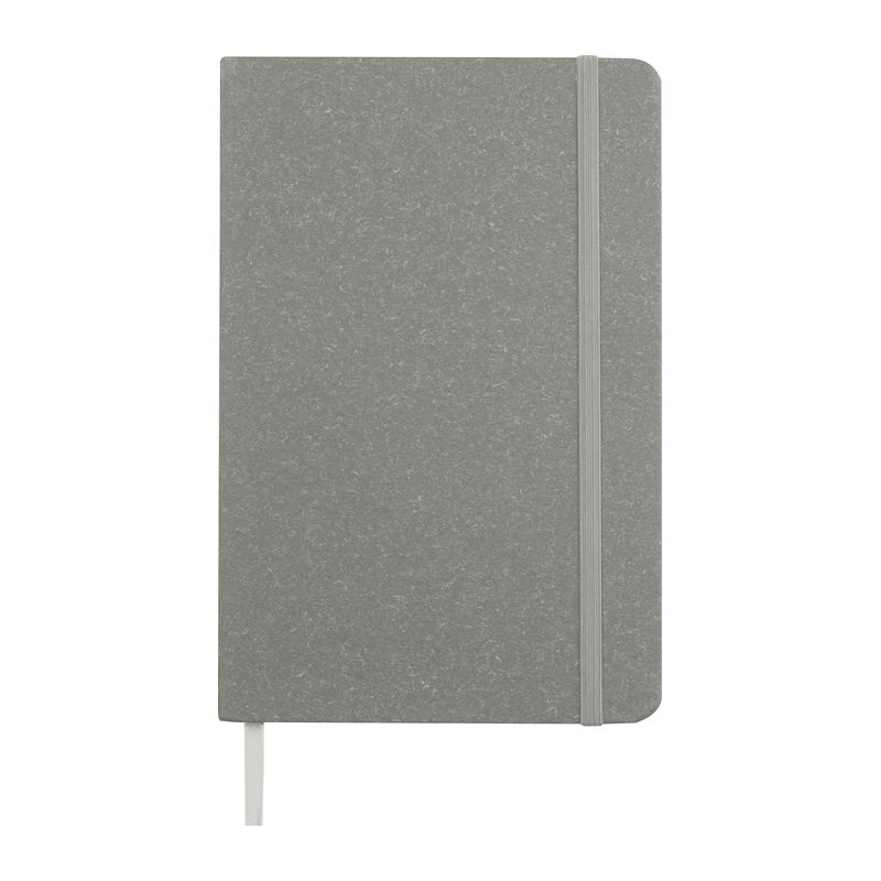 Poznámkový blok A5 s obalem z recyklovaného kartonu, záložkou, 160 tečkovanými stranami a zapínáním na gumičku. Rozměry: 21,1 × 14 × 1,2 cm. Zboží je dodáváno BEZ POUTKA na pero.