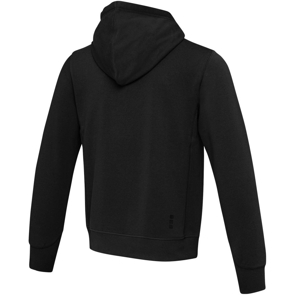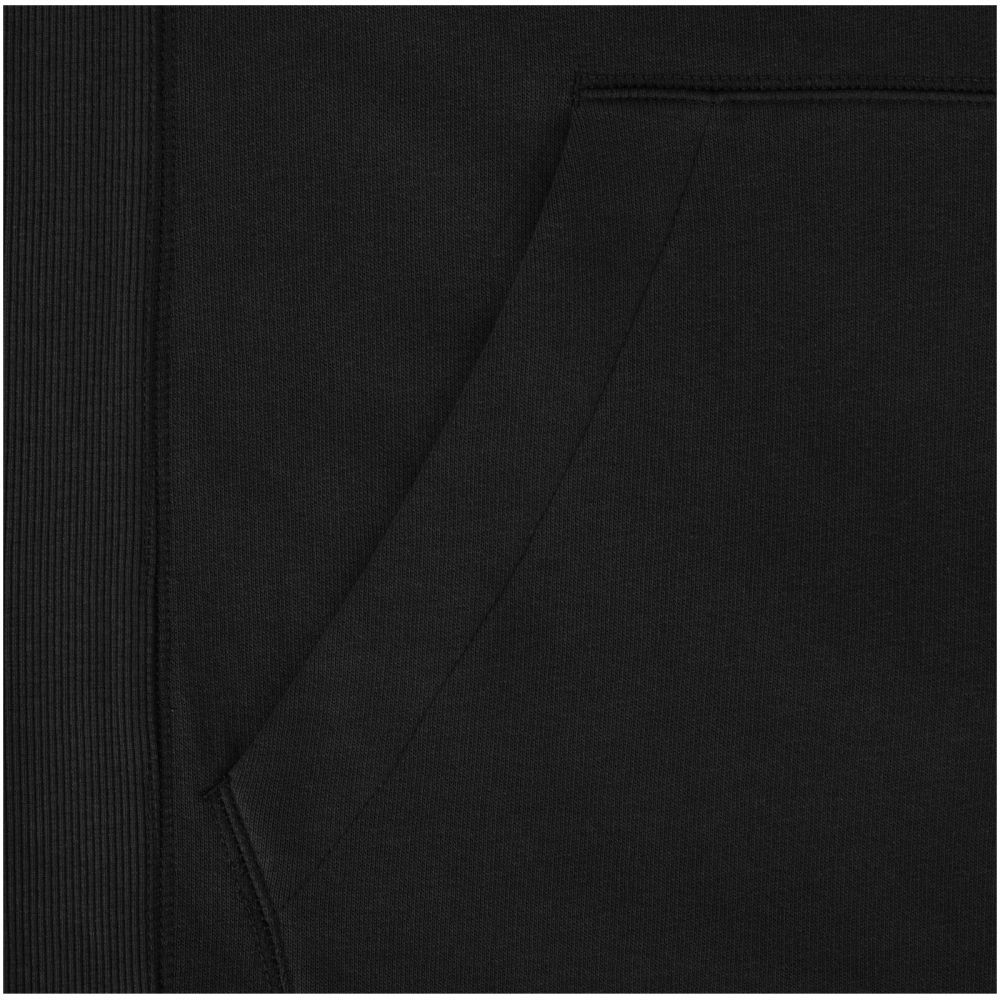 Žebrový úplet bočních panelů Žebrový úplet v-vkládek vpředu na středu. Ploché žebrované manžety ve tvaru V. Žebrový úplet spodního lemu. Stahovací šňůrka v kapuci. Klokaní kapsa. Sedlo. Podšívka z jednolícní pleteniny (žerzej) uvnitř kapuce. Gravírovaná postříbřená očka. Saténová lemovka výstřihu. Páska ve tvaru rybí kosti v kontrastní barvě. Vnitřní kartáčovaná strana zajišťuje měkký, hřejivý a pohodlný pocit.