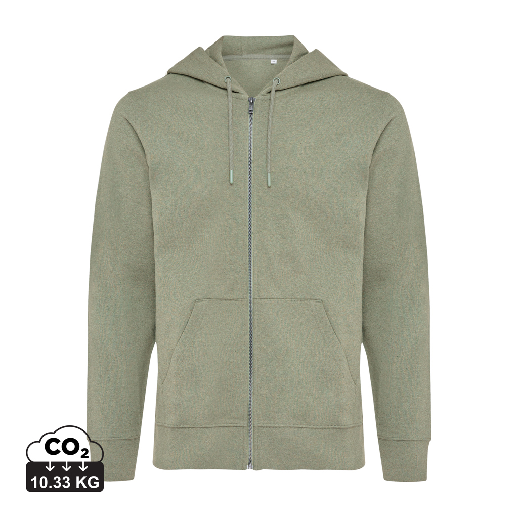 Mikina na zip s kapucí, recyklovaná bavlna, zelená, 3XL