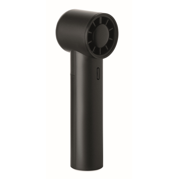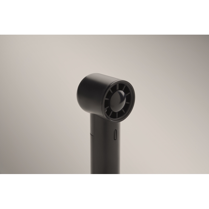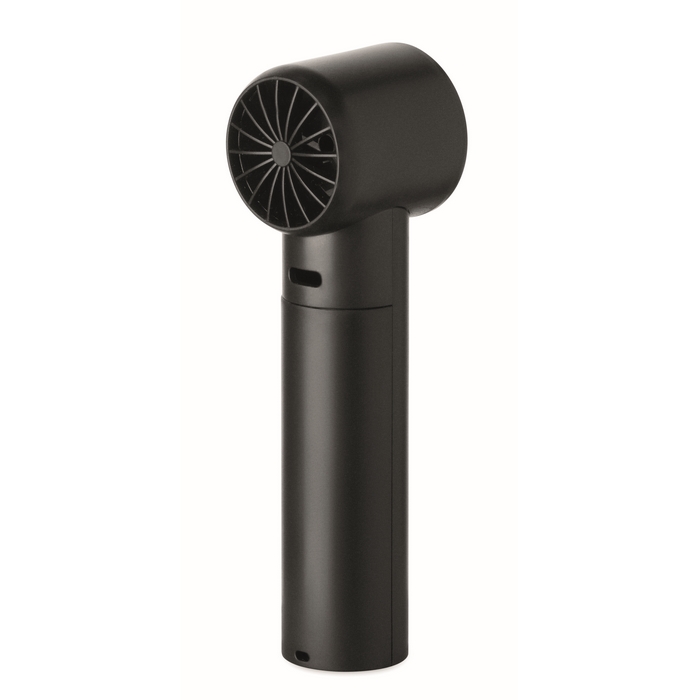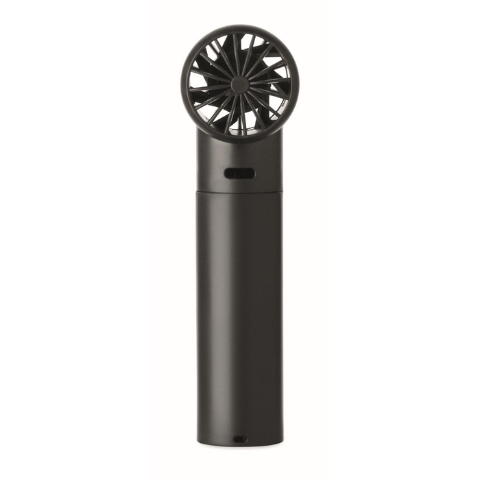 Ruční mini ventilátor z ABS s displejem a 5 nastaveními rychlosti. Obsahuje vyměnitelnou lithiovou baterii s kapacitou 2600 mAh. Rozměry: 13.5 x 4 x 4 cm