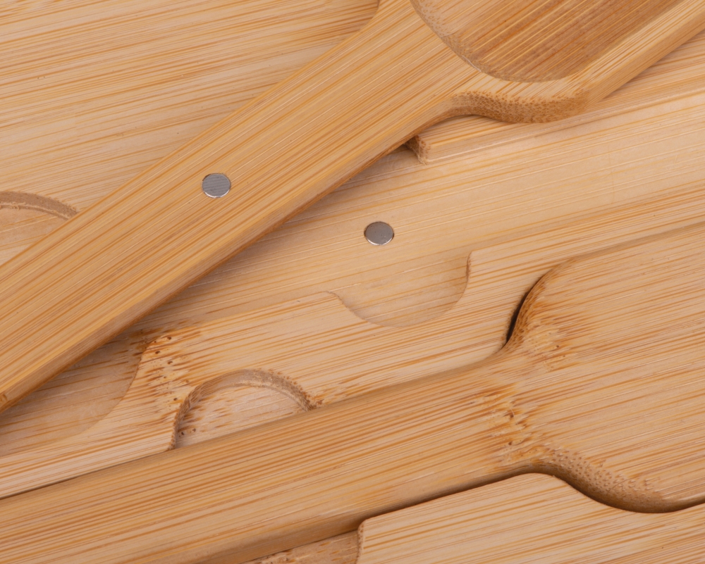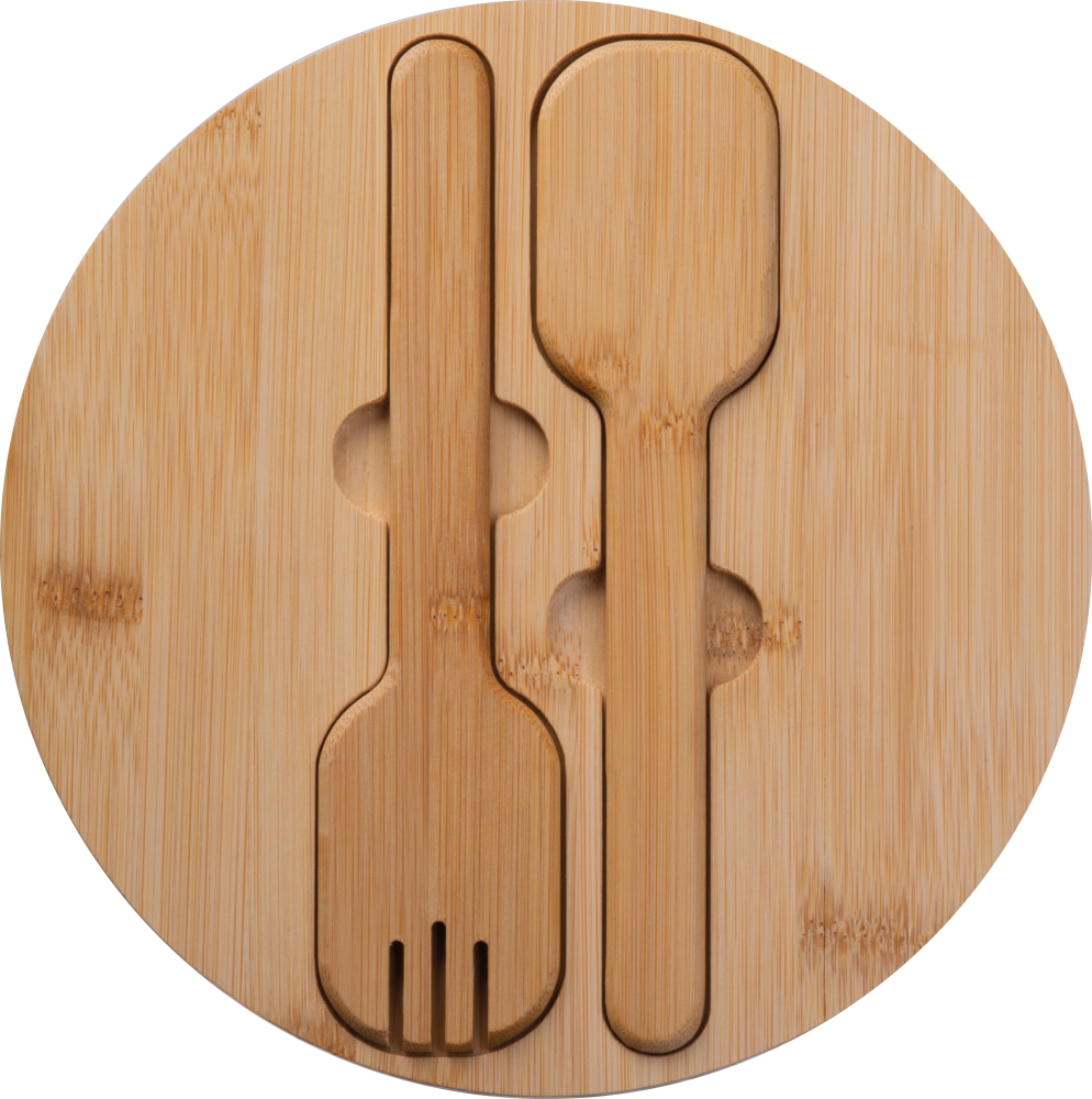 Nerezová mísa na salát s bambusovým víčkem, příborem, kapacita 2000 ml. Rozměry: o 22,3 x 9,5 cm