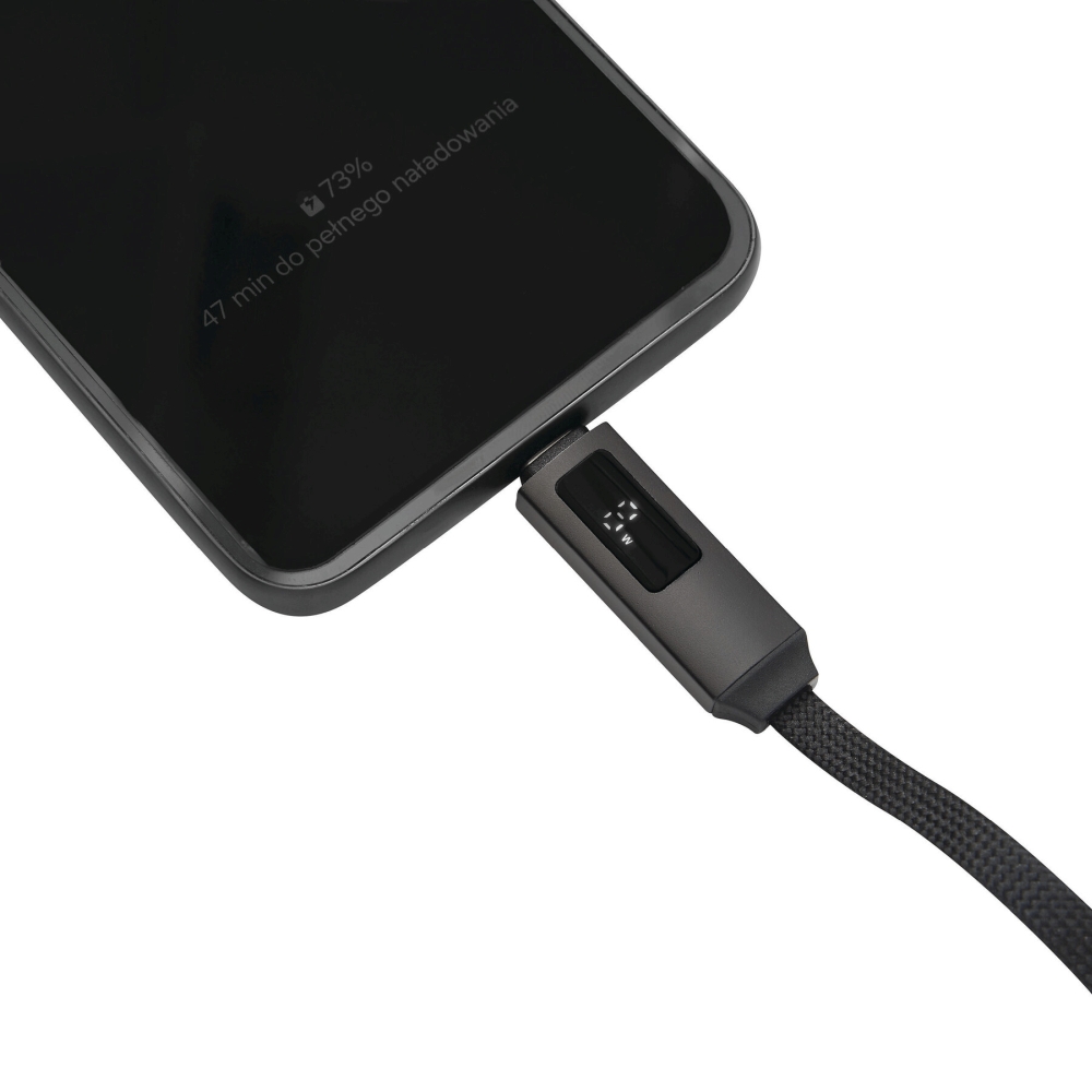 Nabíjecí a datový kabel pro nabíjení chytrých telefonů a zařízení napájených přes USB (napájení 60 W), USB Type-C na USB Type-C, LED indikátor napájení, magnetické zapínání, s klíčenkou. Rozměry: 16 x 1,4 x 0,6 cm