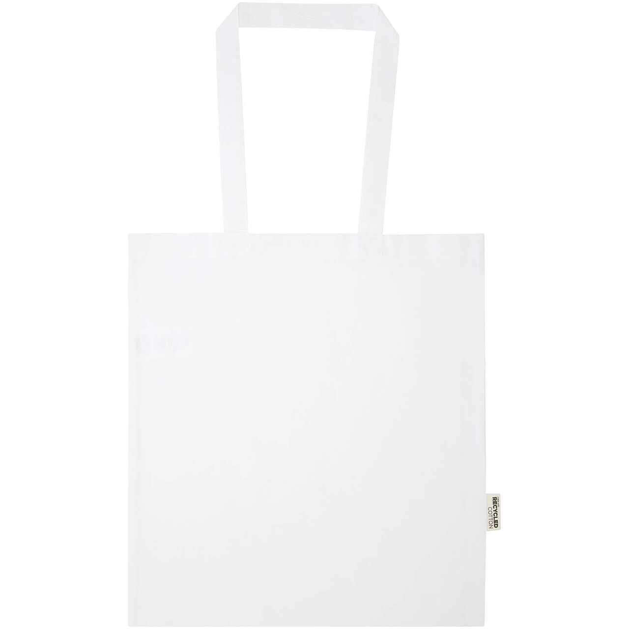 Taška, vyrobená z 60 % z recyklované bavlny s certifikací GRS a ze 40 % z RPET s certifikací GRS, má hustotu tkaniny 180 g/m2, je pevná a odolná, ideální pro každodenní použití. Má velkou hlavní přihrádku, která umožní maximální viditelnost kteréhokoli loga, a díky odolnému materiálu je vhodná i pro nošení těžších věcí (až 5 kilogramů). Ramenní popruhy o délce 30 cm zajišťují pohodlné nošení. Rozměry: 38 x 42 cm