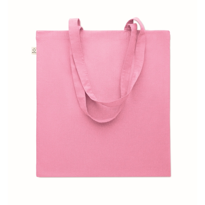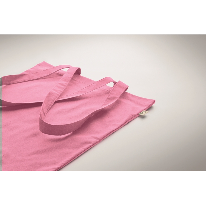 Nákupní taška z recyklované předspotřební bavlny (70 % recyklovaná bavlna a 30 % RPET) s dlouhými uchy. 140 gr/m2. Tato položka se po otisku může zmenšit. Rozměry: 38 x 42 cm