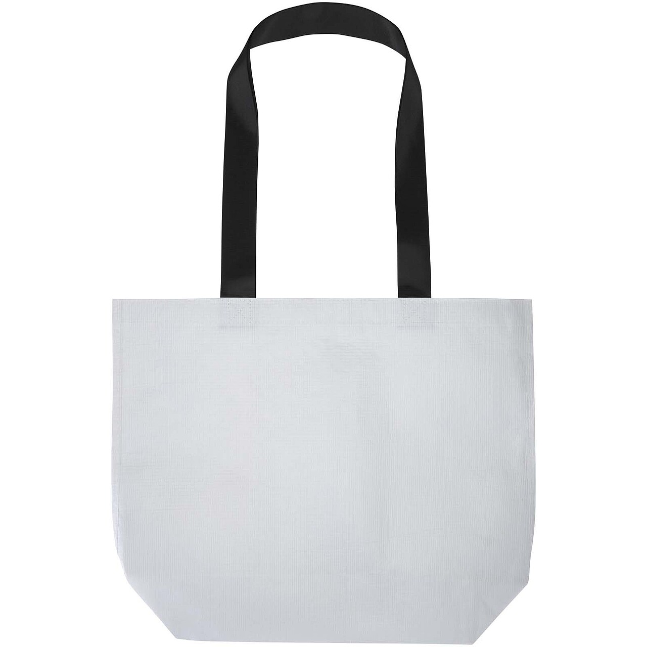 Nákupní taška s dvojitým laminovaným dnem je vyrobena z RPET o gramáži 150 g/m2 s certifikací GRS a dvojitou laminací a nabízí delší životnost a vyšší voděodolnost, kdykoli je to potřeba. Disponuje prostornou otevřenou hlavní přihrádkou, robustními zesílenými rukojeťmi a širokým dnem pro větší kapacitu. Díky nosnosti až 10 kg představuje stylovou a spolehlivou volbu pro každodenní vyřizování pochůzek, veletrhy nebo propagační akce. Objemová kapacita: 18 litrů. Rozměry: 45 x 37,5 x 13,5 cm