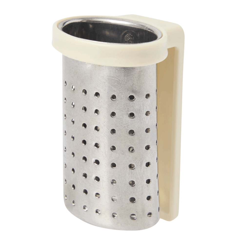 Nálevník na čaj z nerezové oceli, opakovaně použitelný, bez chuti, ideální pro hrubý sypaný čaj, s praktickým plastovým klipem pro snadné připevnění k okraji šálku. Rozměry: 4 x 3,7 x 6 cm
